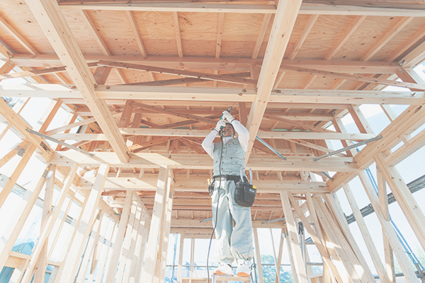 木造住宅において、柱や梁、棟木を組み立てながら、建物のカタチを建設する工事です。